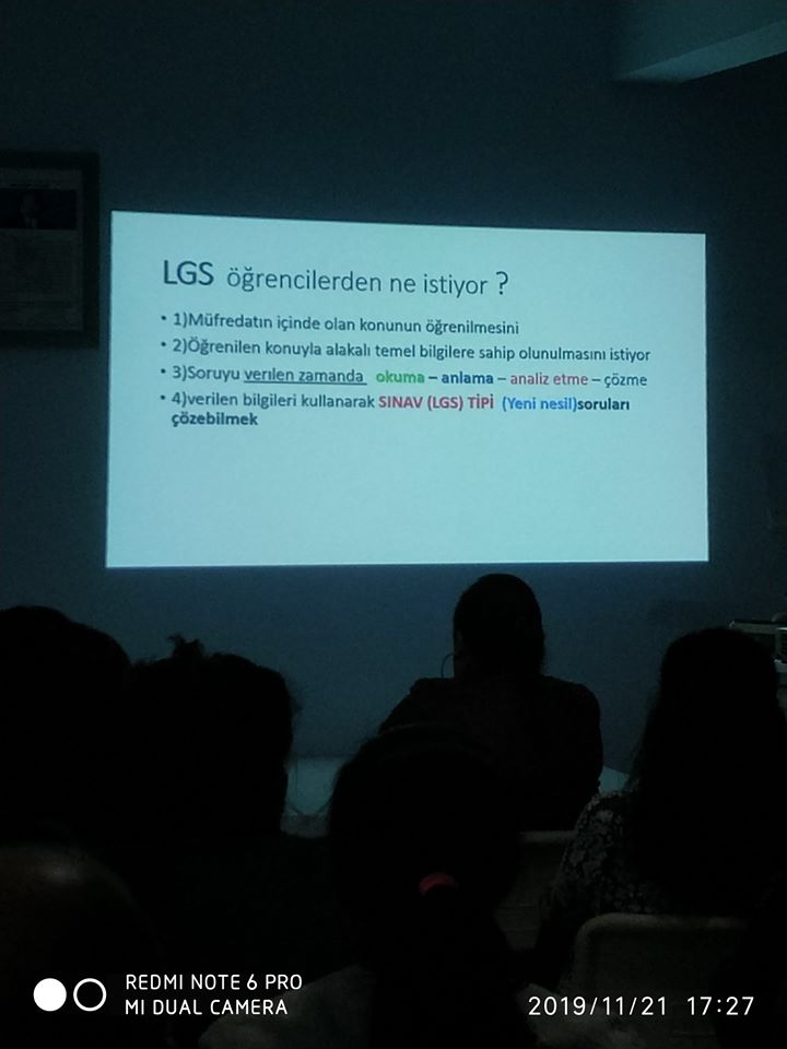 Yeni nesil sorular adı altında hayatımıza giren LGS hakkında 8. sınıf öğrencilerimizin velilerini bilgilendirmek, 1. ara tatile kadar yapılan ve bundan sonra yapılacak olan çalışmalar konusunda bilgi vermek amacıyla 21 Kasım tarihinde okulumuzda bir seminer düzenlendi. Seminerde kurucu müdürlerimiz Ali Bolat ve İbrahim Bolat; # LGS nedir, ne değildir? # LGS'nin TEOG sınavından ne farkı var? # Lise Giriş Sınavında özel ders almadan veya etüt merkezine gitmeden başarılı olmak mümkün müdür? # BEK OKULLARI'ndan mezun olan öğrencilerin özel ders almadan ve etüt merkezine gitmeden başarılı olmasının nedeni nedir? Sorularına cevaplar verdiler. Söyleşi havasında geçen seminerin ardından velilerimiz gösterilen emekler için bir kez daha teşekkürlerini ifade ederek seminerden ayrıldılar.